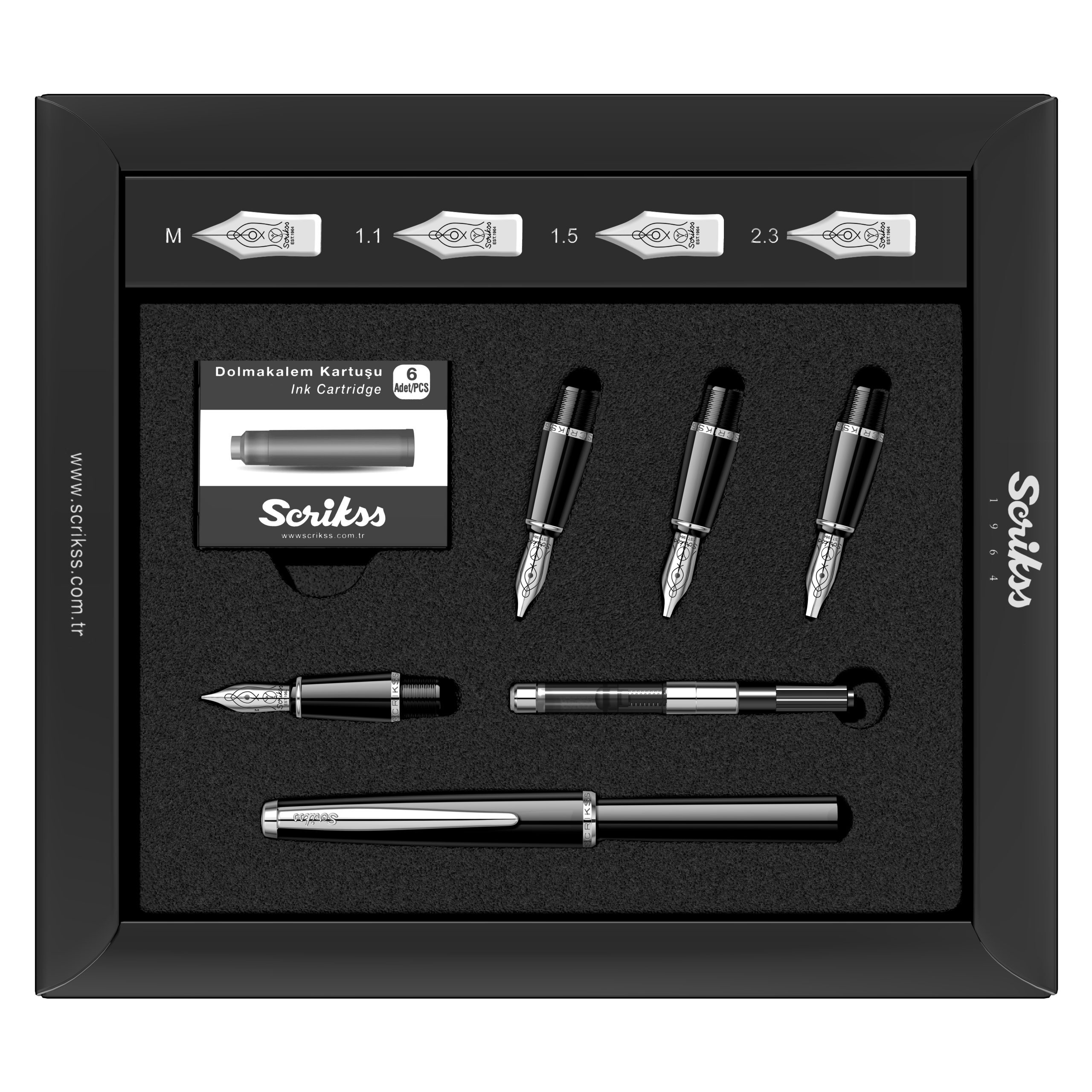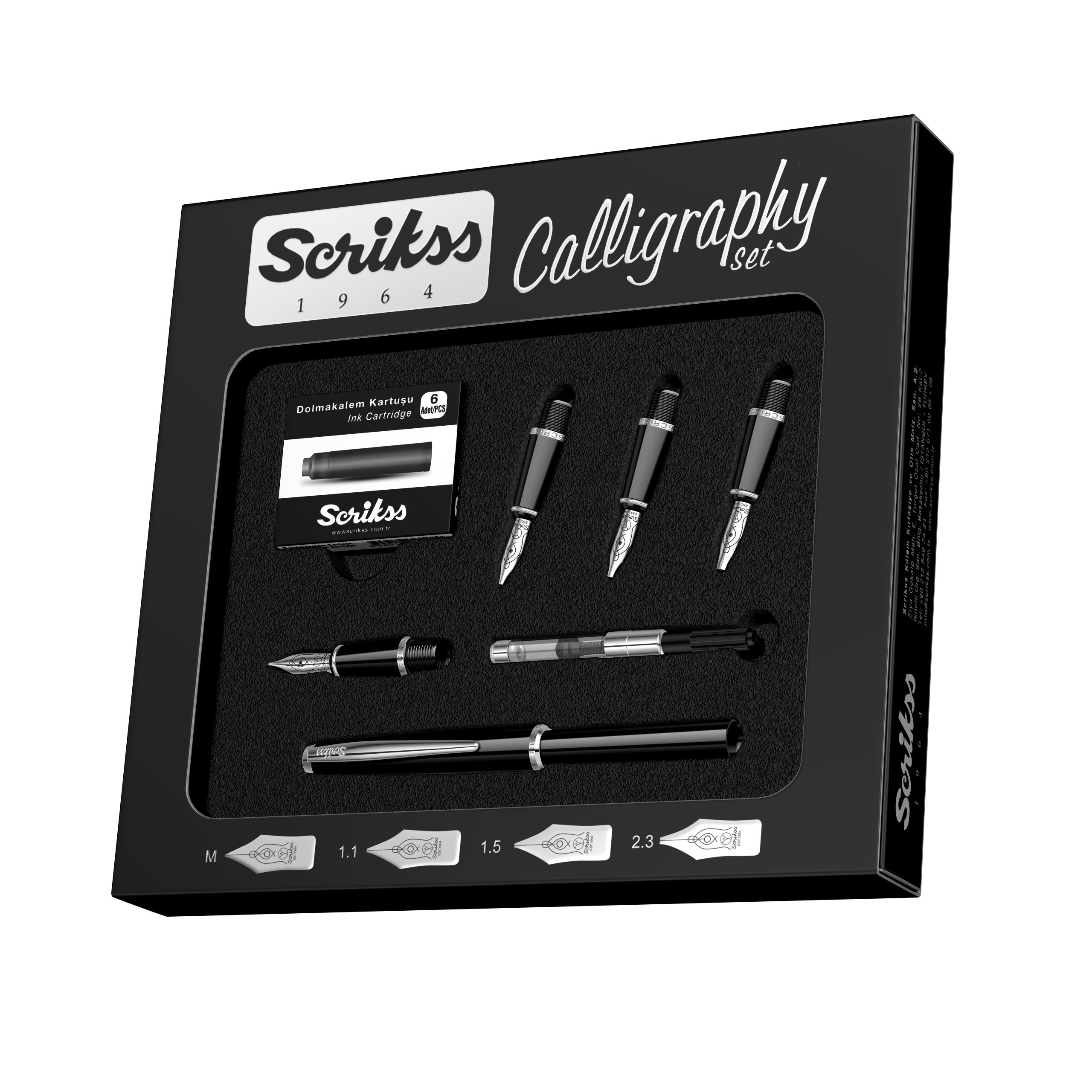 Penita: Penita din otel inoxidabil polisat, avand in varf pastila de iridiu. Stiloul functioneaza atat cu cartuse, cat si cu convertor. Setul contine patru penite ( medie, 1.1mm, 1.5mm, 2.3mm).
