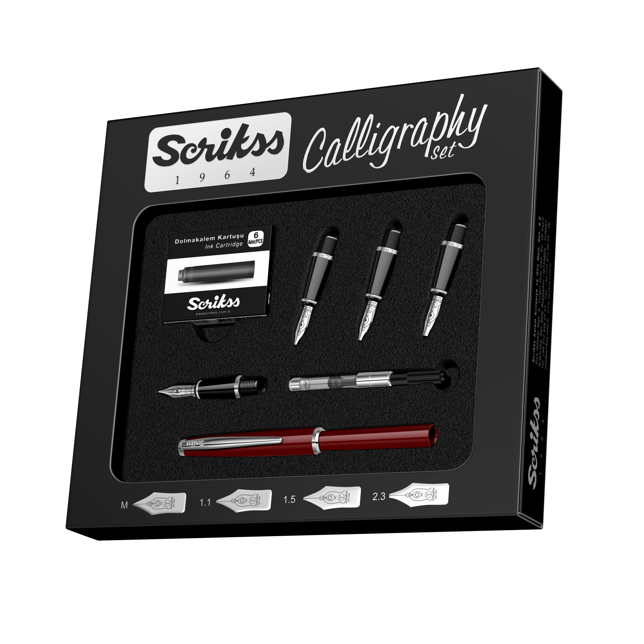 Penita: Penita din otel inoxidabil polisat, avand in varf pastila de iridiu. Stiloul functioneaza atat cu cartuse, cat si cu convertor. Setul contine patru penite ( medie, 1.1mm, 1.5mm, 2.3mm).