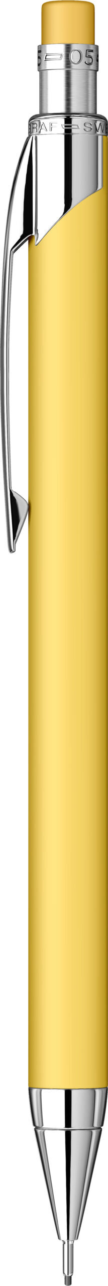 Corp: Corp din plastic cu aspect cauciucat galben mat.