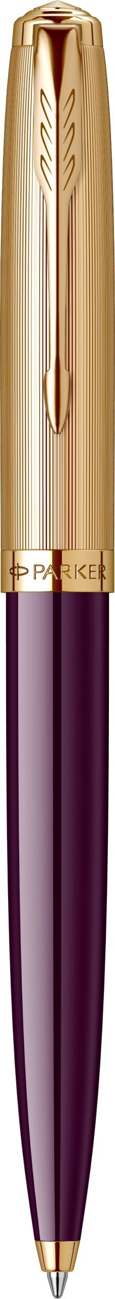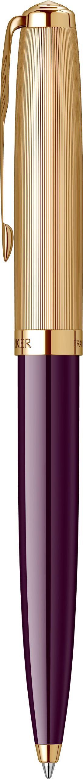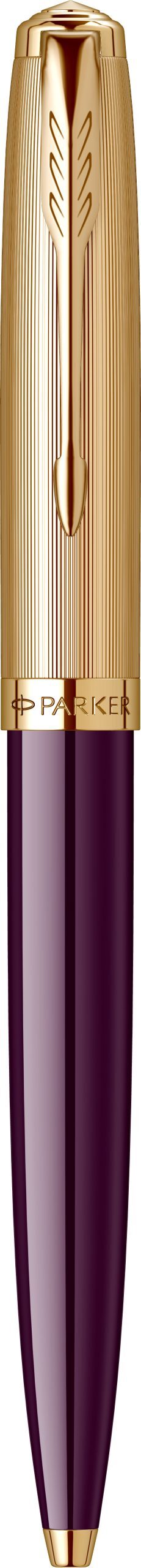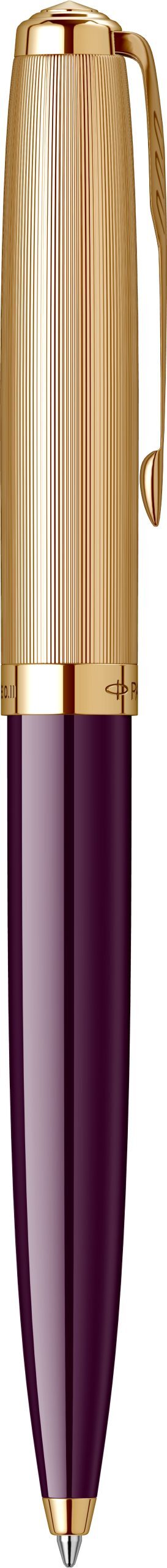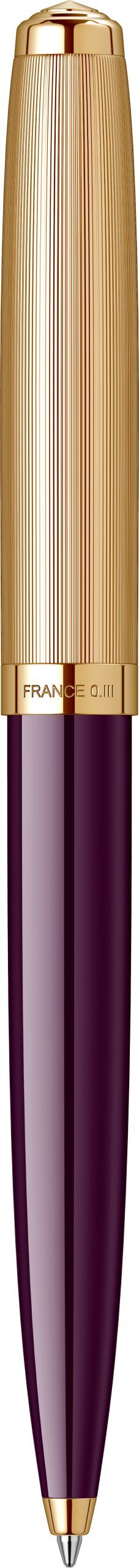 Corp: Corp inferior din rasina acrilica de culoare mov. Corp superior din alama placata cu aur de 23K.