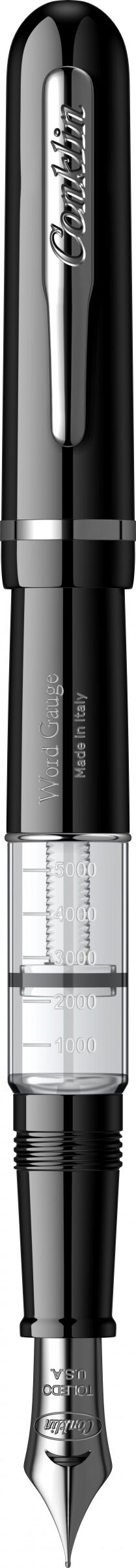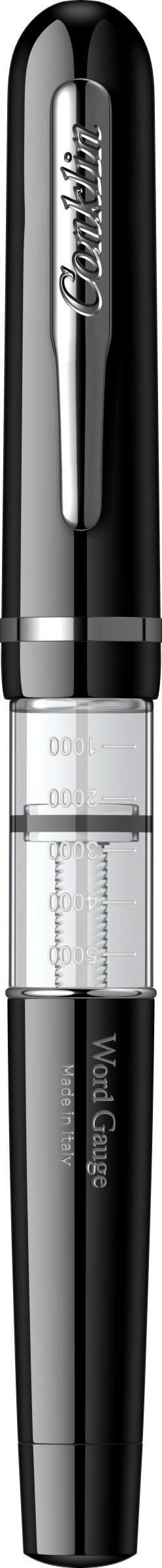 Corp: Corp din rasina acrilica lucioasa de culoare neagra prevazut cu o fereastra a rezervorului, transparenta, cu numarul de cuvinte marcat pe niveluri.