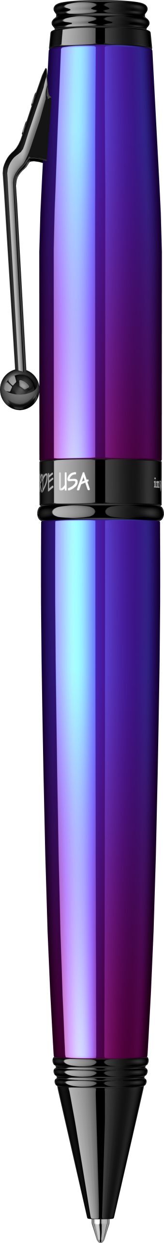 Corp: Corp superior din alama cizelat cu multiple straturi de lac albastru-violet model cameleon lucios. Corp inferior din alama cizelat cu multiple straturi de lac albastru-violet model cameleon lucios.