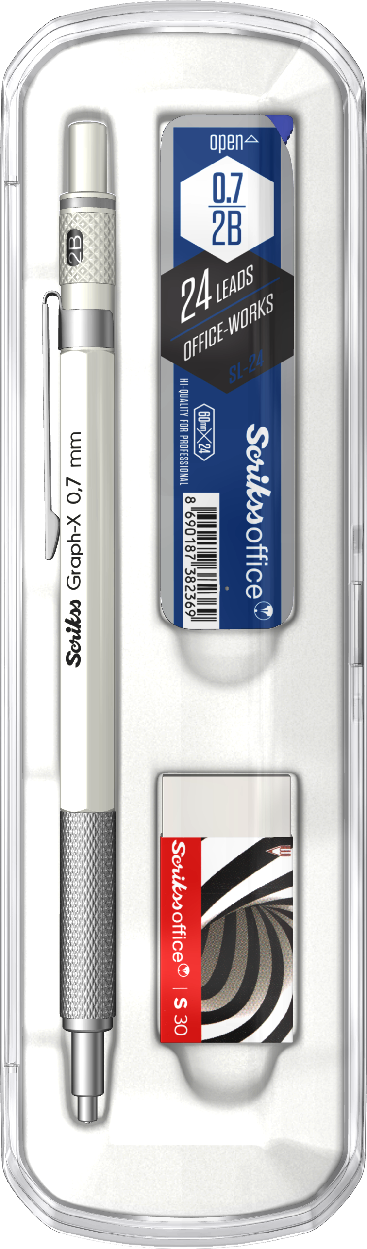 Varf: Varf calibrat de 0.7 mm din otel inoxidabil cromat. Mandrina prindere mina din alama ce asigura o prindere ferma a minei. Mina creion mecanic Scrikss – 0.7 mm ( vezi consumabile )