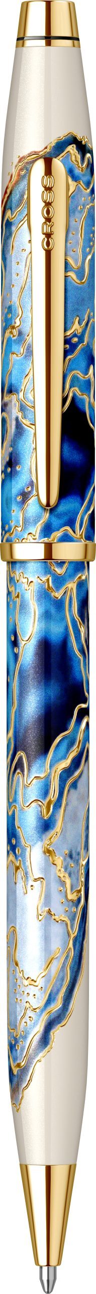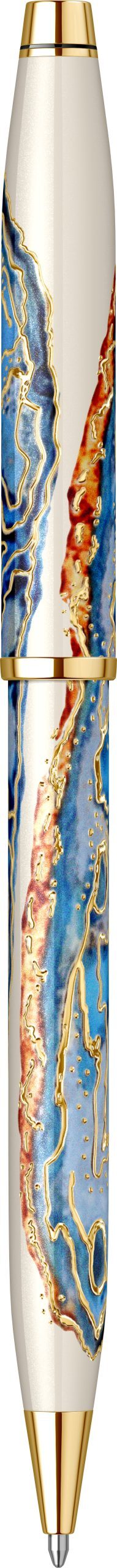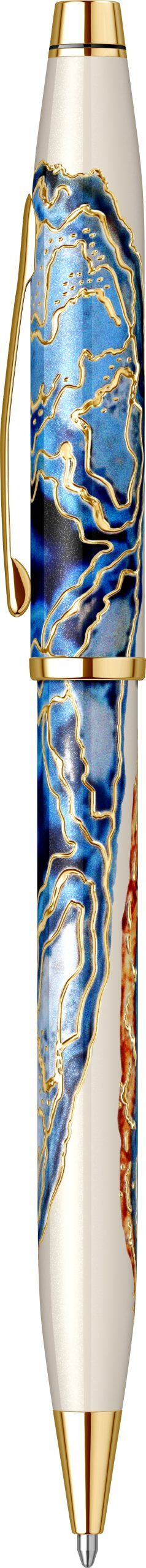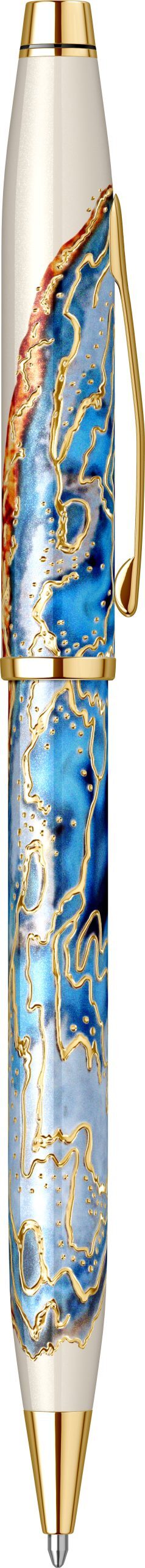 Corp: Corp superior din alama lacuit cu multiple straturi de lac albastru cu alb lucios avand incrustatii placate cu aur de 23k si modele inspirate din Malta