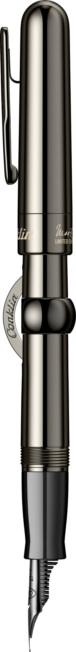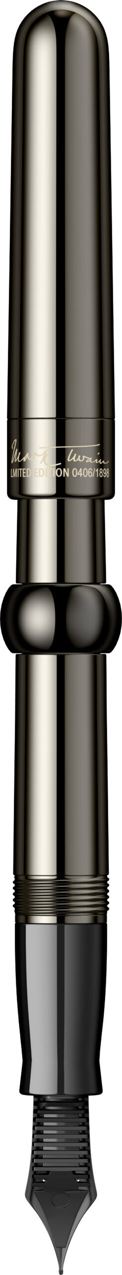 Corp: Corp din rasina acrilica lucioasa de culoare gun metal lucios. Capac din rasina acrilica lucioasa de culoare neagra cu model wave, gravat pe inelul metalic cu semnatura lui Mark Twain. Capacul se inchide prin insurubare.