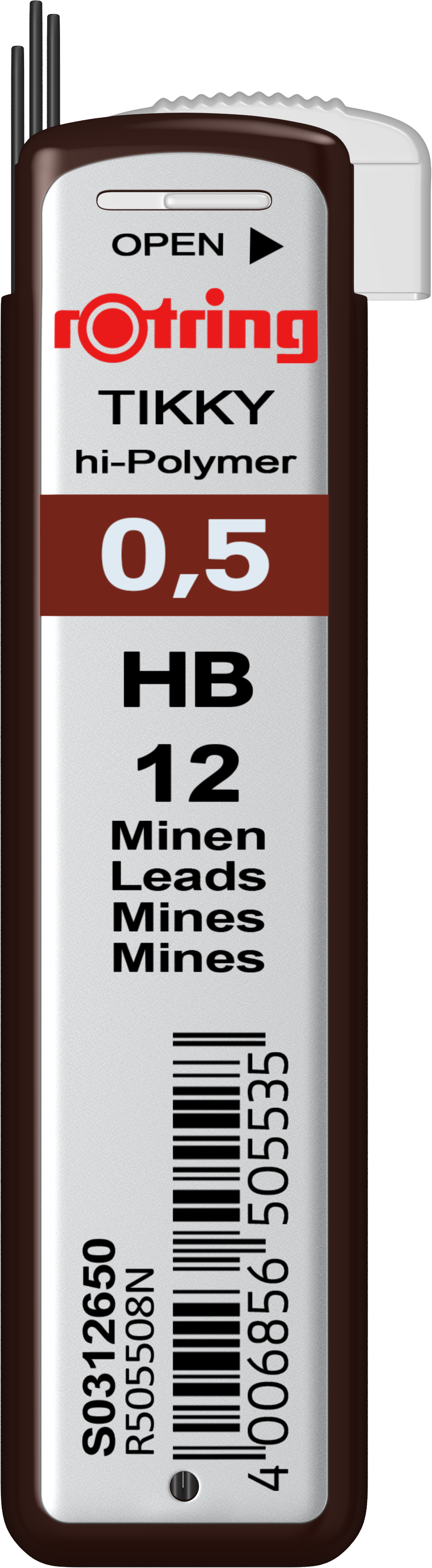 Etuiul: Etuiul contine 12 mine de 0.5 mm – tarie HB