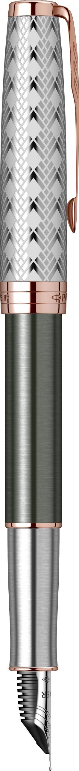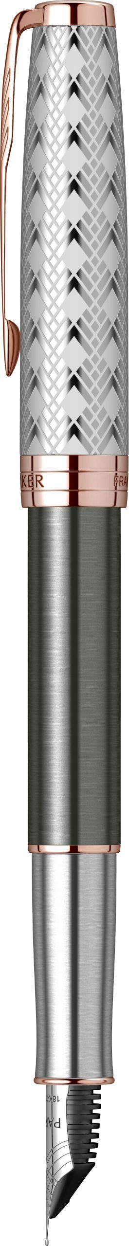 Varf: Penita din aur masiv de 18K placata cu rodiuprin tehnologie PVD (Physical Vapor Deposition Systems), avand in varf pastila de iridiu. Stiloul functioneaza atat cu cartuse, cat si cu convertor