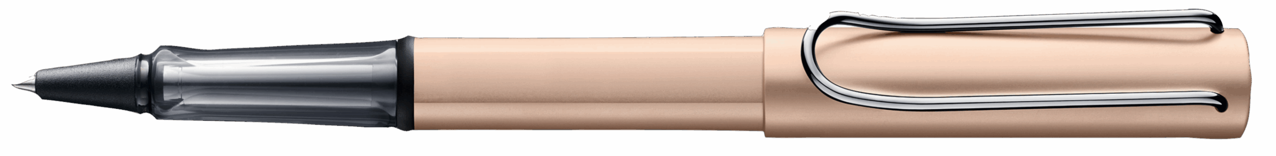 Detalii roller Lamy AL-star: aluminiu anodizat / clip metalic / grip din plastic ergonomic / rezerva roller Lamy M63 black