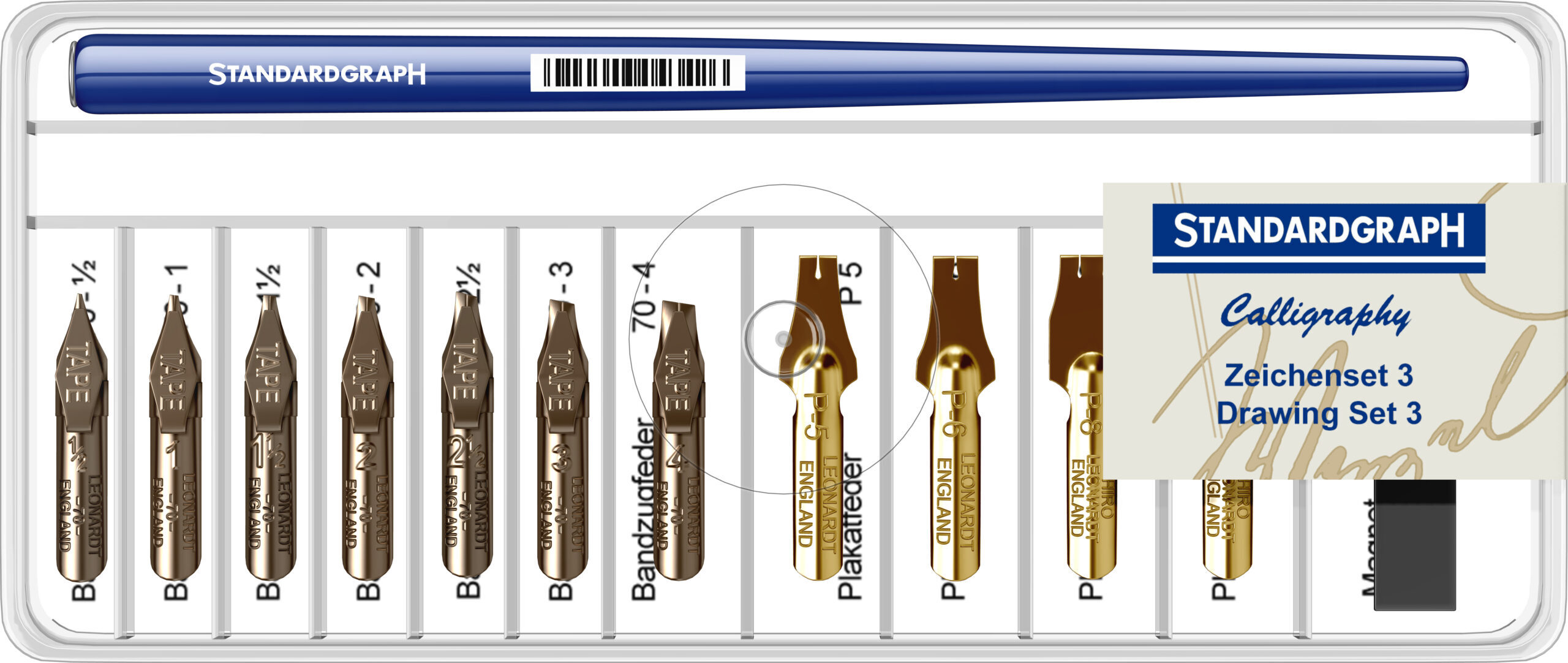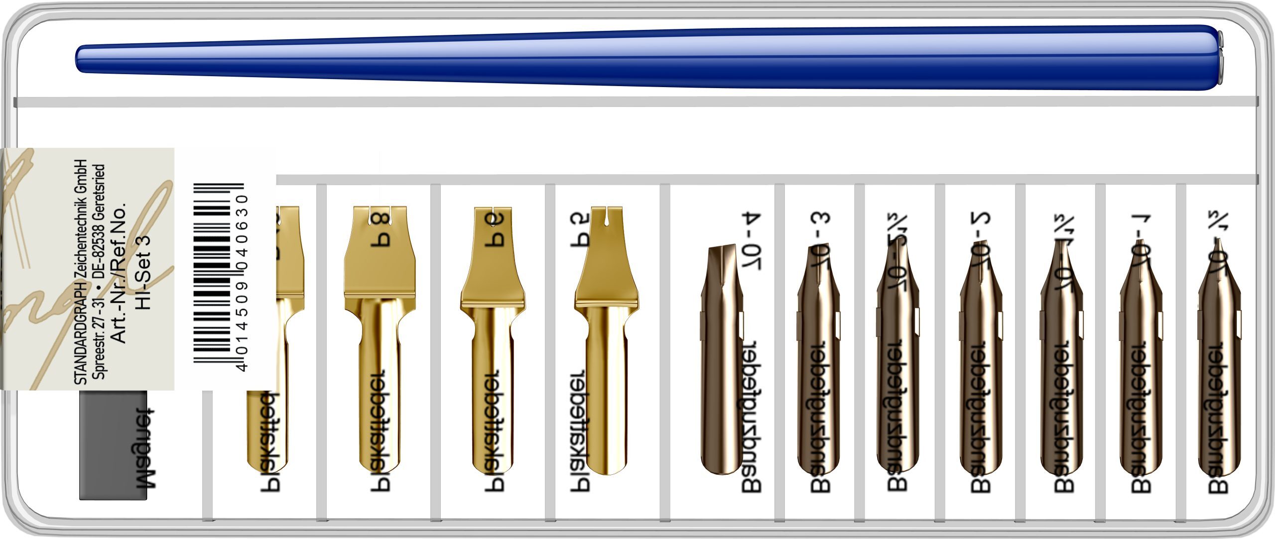 Penite: Penite din otel inoxidabil. Toc caligrafic din lemn.