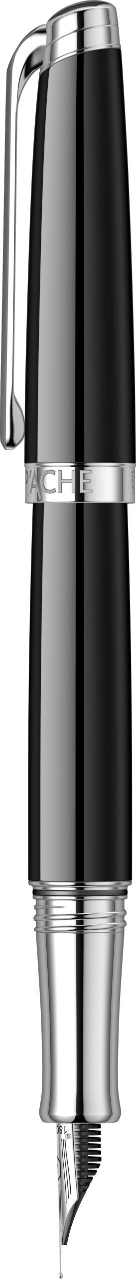 Varf: Penita din aur de 18k placata cu rodiu avand in varf pastila de iridiu. Stiloul functioneaza atat cu cartuse, cat si cu convertor