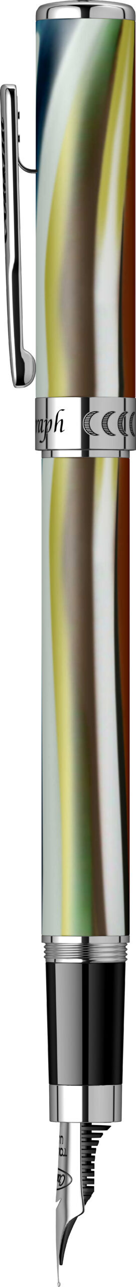 Penita: Penita din otel polisat avand in varf pastila de iridiu. Stiloul functioneaza atat cu cartuse universale, cat si cu convertor.