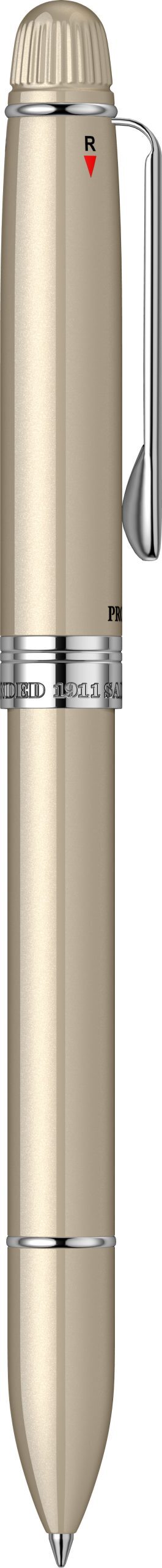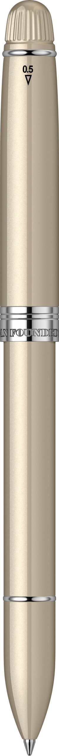 Corp: Corp superior din alama lacuit cu multiple straturi de lac auriu. Radiera mini montata.